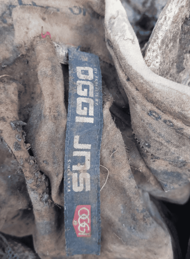 Resaltaron que la osamenta se encontraba encobijada, portaba una vestimenta con una playera marca Polo, unas banderitas y abajo una letra que dice Polo felling y el número 8 .
