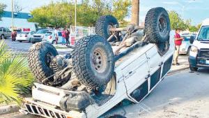 Dos hombres en estado de ebriedad resultaron lesionados al chocar su vehículo contra una palma en el Bulevar del Maestro